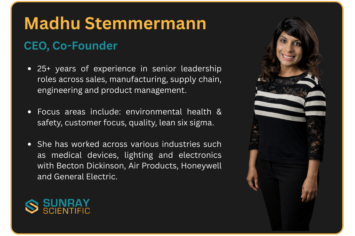 Led by Madhu Stemmermann (CEO) and Andrew Stemmermann (CTO), SunRay Scientific provides innovative materials and processes that enable printed electronics across various industries, including automotive, healthcare, smart labels, and sensors.